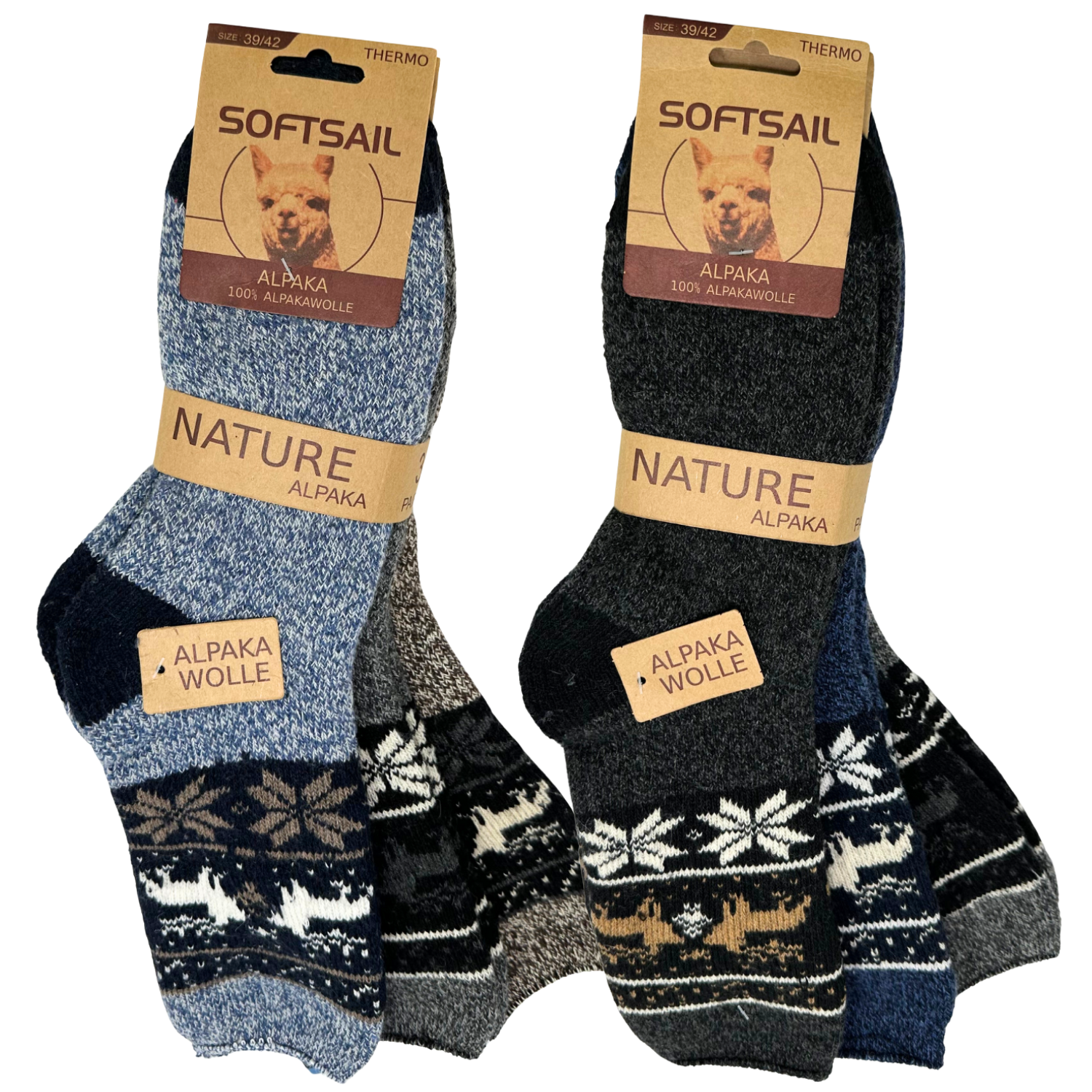 3/6 Paar Alpakasocken für Herren& Damen - 100% Alpakawolle - atmungsaktiv und wärmeisolierend 39-42 43-46